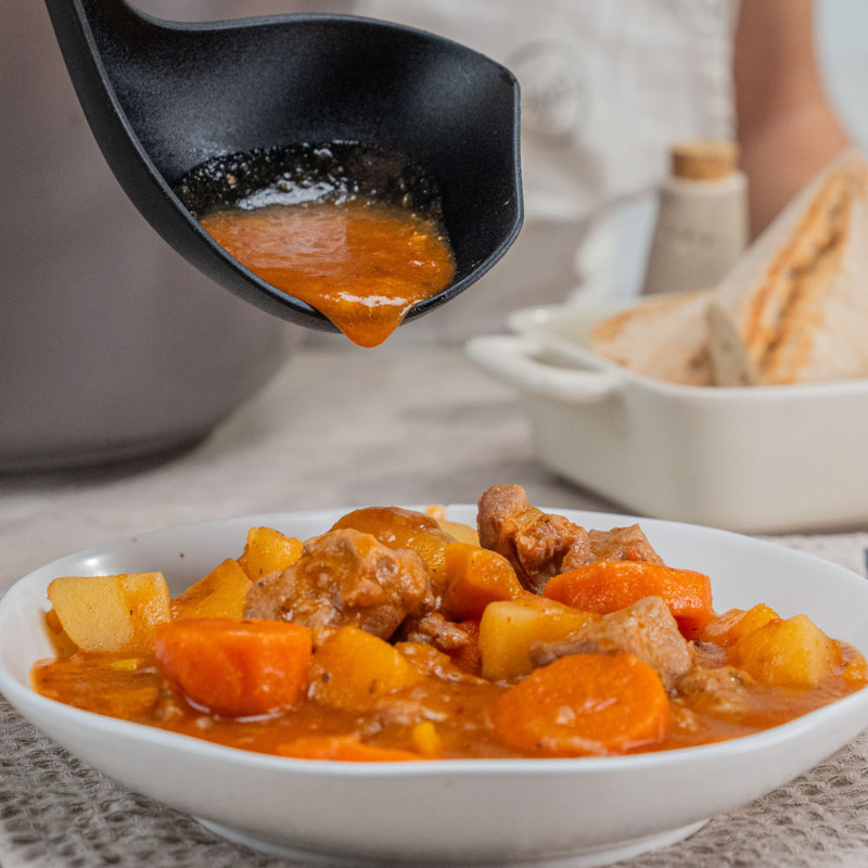 Agregamos la cerveza negra y continuamos cocinando en la Olla destapada unos minutos para que se evapore el alcohol.