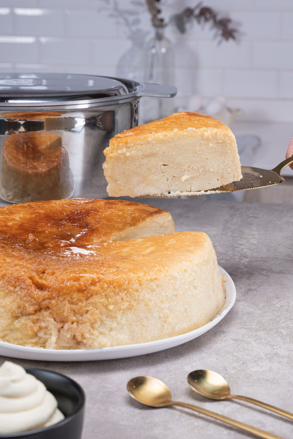 150 gr. de azúcar restantes y acaramelar a Fuego Medio hasta lograr un caramelo claro. Dejar enfriar unos minutos y verter la preparación de leche. Tapar y cocinar a Fuego Medio hasta finalizar la cocción. Aprox. 45/50\'.